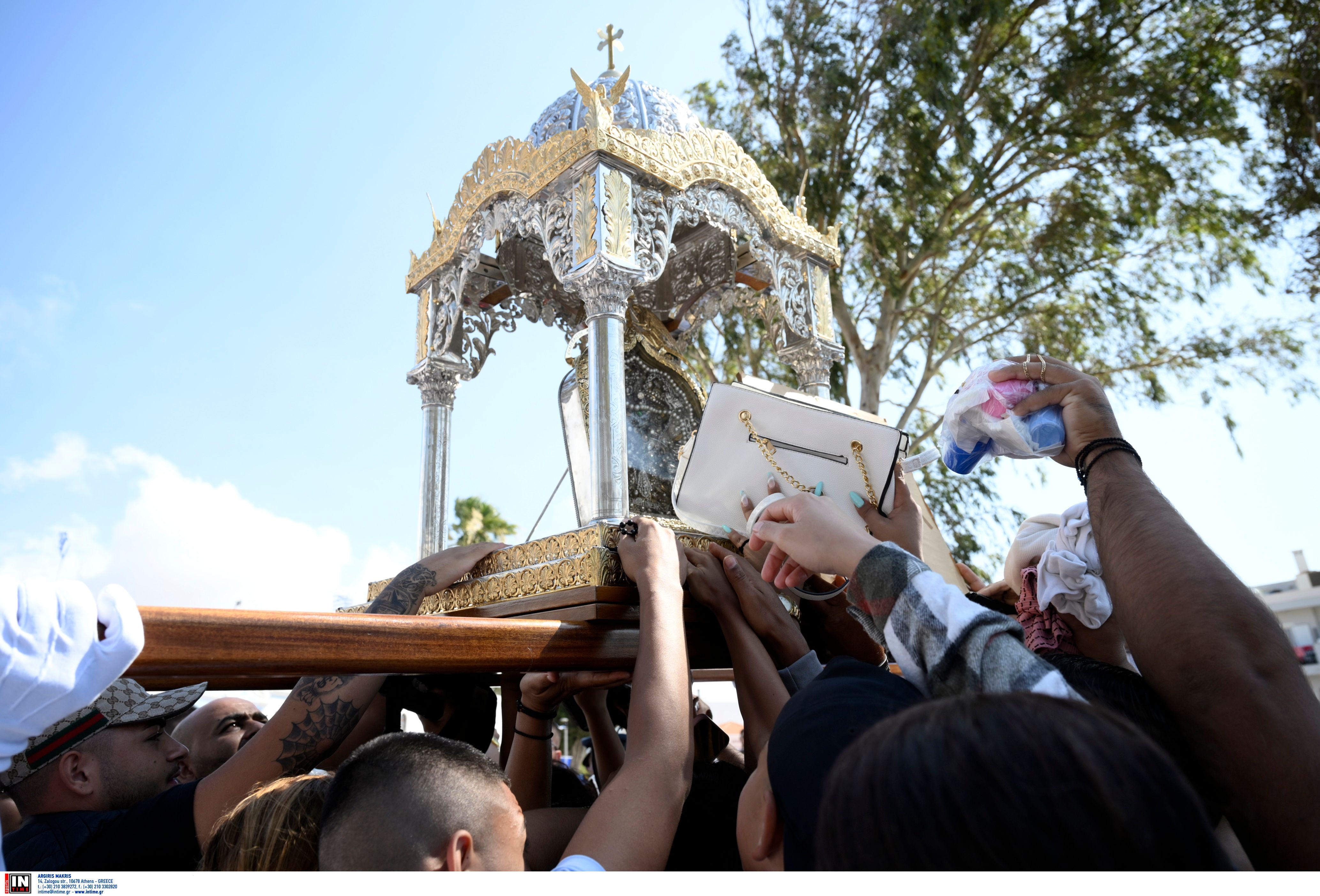 Αυτή την ώρα βρίσκεται σε εξέλιξη η Πολυαρχιερατική Θεία Λειτουργία και αργότερα θα ακολουθήσει λιτάνευση της αγίας εικόνας.