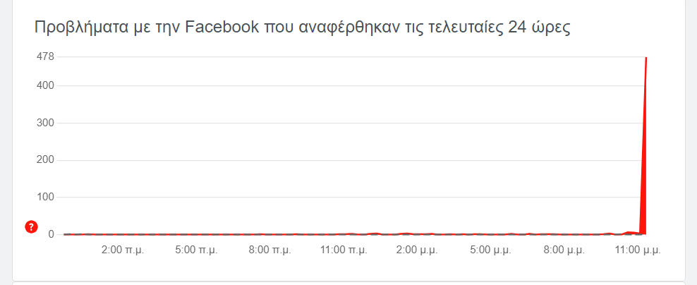 Αυξημένες φαίνονται οι αναφορές των χρηστών στην Ελλάδα από τις 23:00 και μετά, στο διάγραμμα του Downdetector.