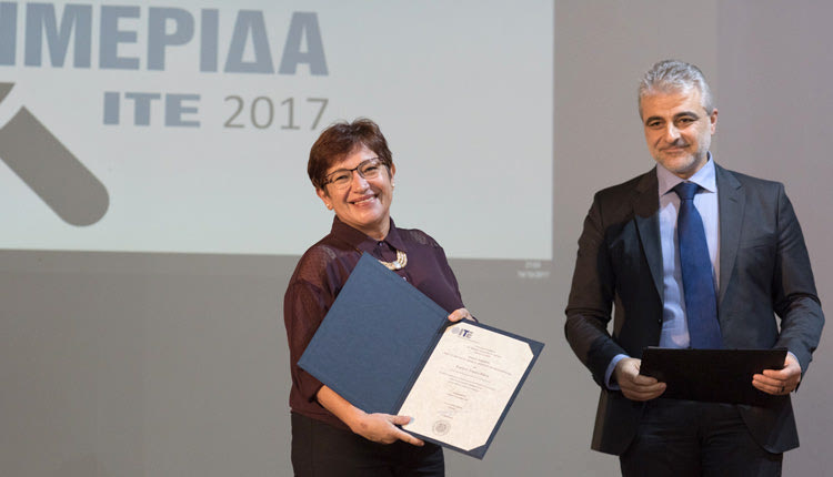 Το Βραβείο Εξαιρετικών Υπηρεσιών προς το ΙΤΕ έλαβε η κα Ελένη Τραγανίτη, προϊσταμένη του Τμήματος Νομικών Υπηρεσιών.