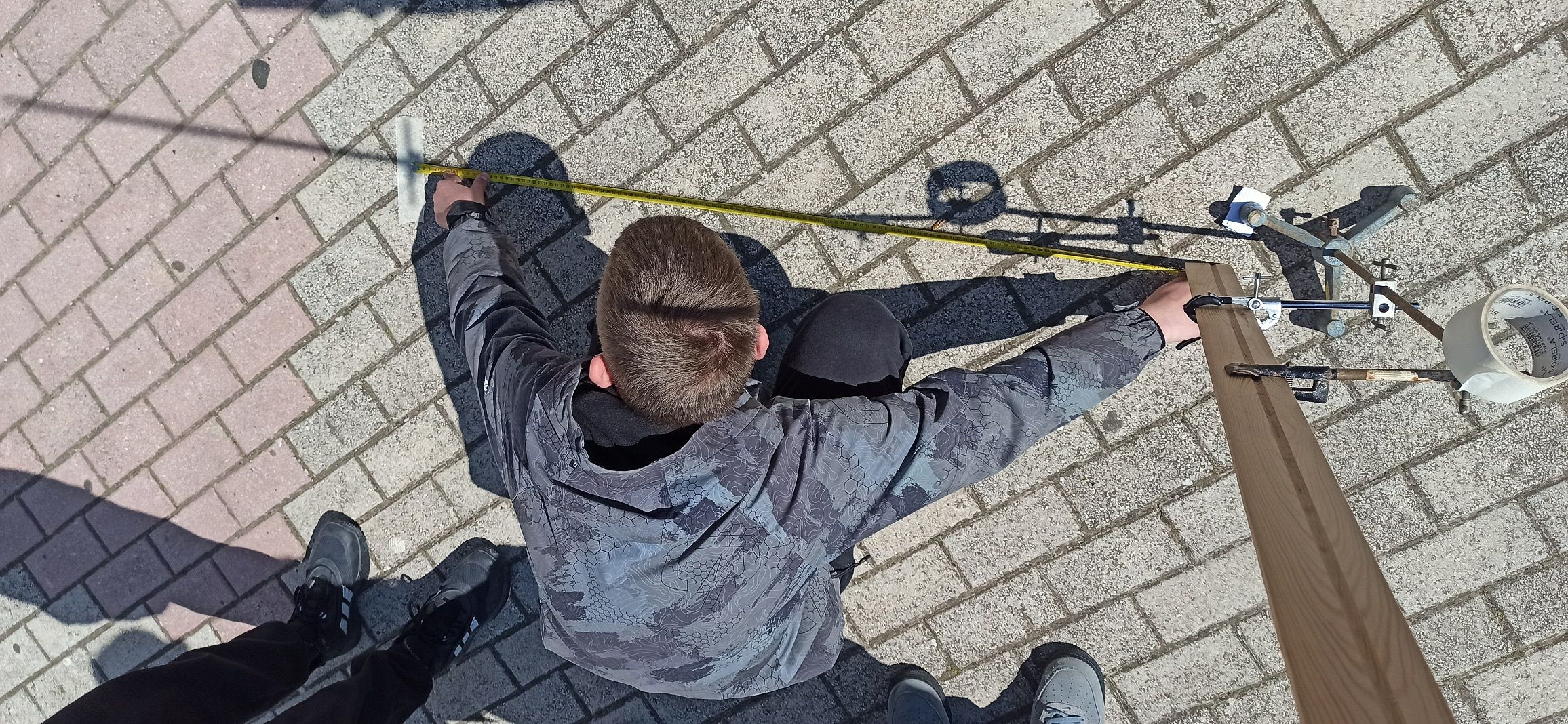 Όλοι οι μαθητές την ίδια ημέρα και ακριβώς την ώρα της άνω ηλιακής μεσουράνησης, δηλαδή τη στιγμή που ο Ήλιος βρίσκεται στο μέγιστο ύψος στον ουρανό, μέτρησαν το μήκος της σκιάς ενός στύλου, τον οποίο είχαν τοποθετήσει στην αυλή του σχολείου τους, ύψους ενάμισι μέτρου.