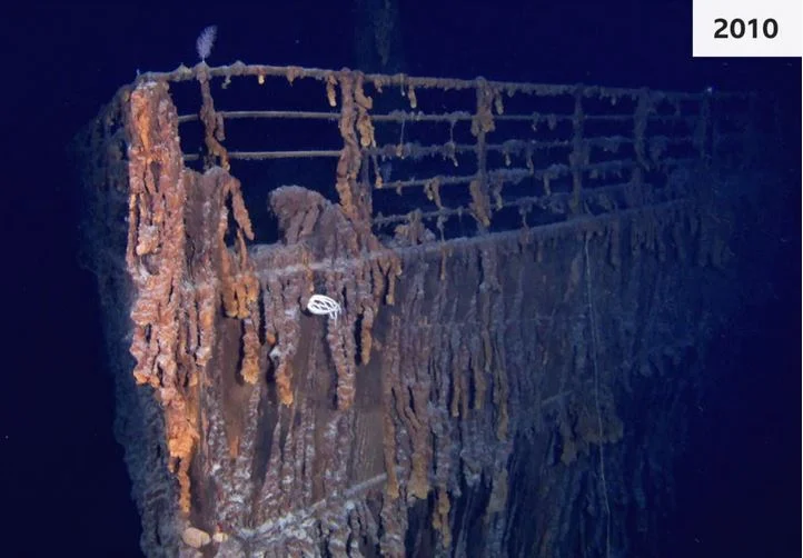 Ένα μέρος του κιγκλιδώματος της πλώρης αποσυντέθηκε και αποκολλήθηκε από το πλοίο με τους ειδικούς της RMS Titanic Inc να εκτιμούν ότι αυτό συνέβη τα τελευταία δύο χρόνια. Δεδομένου ότι αυτό το κομμάτι του κιγκλιδώματος μήκους 4,5 μέτρων ήταν στη θέση του το 2010 οι ειδικοί της RMS Titanic Inc λένε ότι η αποσύνθεση του Τιτανικού είναι δεδομένη αλλά εξελίσσεται με πιο αργό ρυθμό από ότι πιστευόταν μέχρι σήμερα με κάποιες μελέτες να έχουν υποδείξει πλήρη κατάρρευση και καταστροφή του ναυαγίου έτσι τουλάχιστον όπως το βλέπουμε σήμερα σε 20-30 χρόνια.