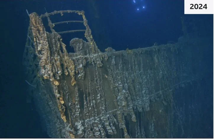 Η εμβληματική πλώρη του Τιτανικού που αποτελεί μέρος της ποπ κουλτούρας εξαιτίας της διάσημης σκηνής εκεί του Λεονάρντο Ντι Κάπριο και της Κέιτ Γούινσλετ στην πολυβραβευμένη ταινία του Τζέημς Κάμερον αποτελεί σταθερό στόχο των ερευνών και καταγραφών των αποστολών που γίνονται στο ναυάγιο.