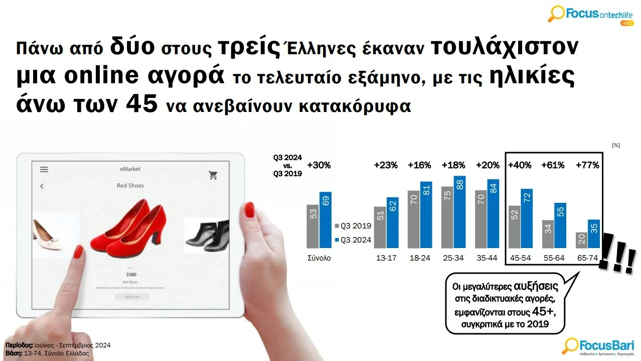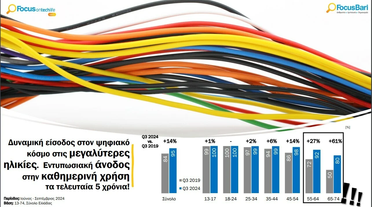 Δυναμική είναι η είσοδος στον ψηφιακό κόσμο για τις μεγαλύτερες ηλικίες, με τους 45+ να είναι η ηλικιακή ομάδα όπου η χρήση διαδικτύου αυξάνεται κατακόρυφα.