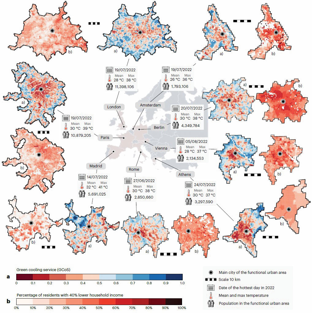 Ο παρακάτω σύνδεσμος οδηγεί στο σχετικό άρθρο στο Nature Cities υπό τον τίτλο: “Unprivileged groups are less served by green cooling services in major European urban areas”