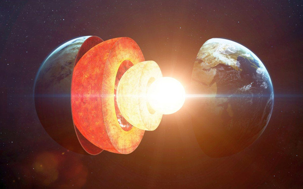 Όταν η Γη ήταν ακόμα μια γιγάντια σφαίρα διάπυρου υλικού, τα βαρύτερα στοιχεία, όπως ο σίδηρος και ο χρυσός, βυθίστηκαν στο κέντρο της και σχημάτισαν τον πυρήνα, ο οποίος χωρίζεται σε δύο στρώματα: ένα εξωτερικό στρώμα λιωμένου σιδήρου και ένα εσώτερο στρώμα από στερεό σίδηρο.