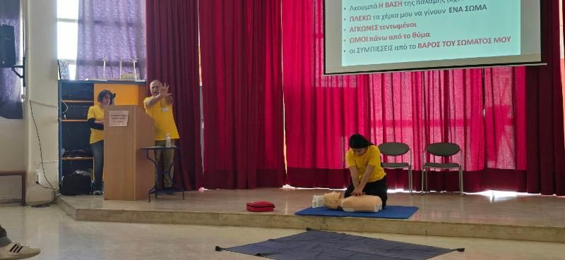 Οι συμμετέχοντες παρακολούθησαν με εξαιρετικό ενδιαφέρον τα μαθήματα αντιμετώπισης πνιγμονής αλλά και λιποθυμίας και θέση ανάνηψης του θύματος καθώς και ΚΑΡΠΑ και μαθήματα χρήσης απινιδωτή.