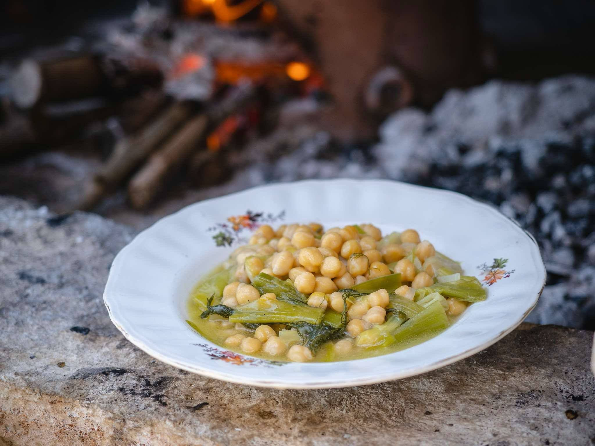 Όμως, αυτή η συνταγή, ρεβύθια με αγριόπρασα «σβησμένα» με αλευρολέμονο, στην Κρήτη είναι η αγαπημένη μας.