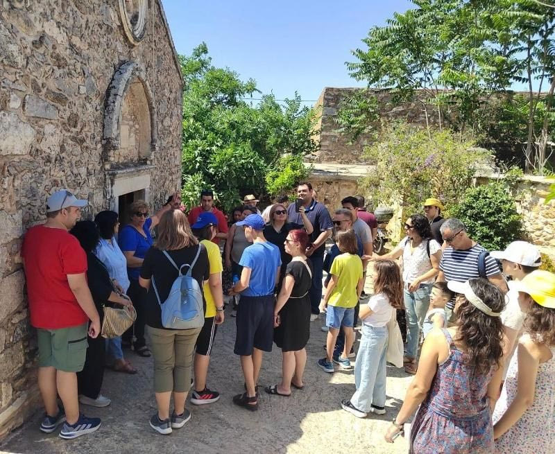 “Η Μαρία Δαμιανάκη μας ξενάγησε στον βυζαντινό ναό του Αγίου Γεωργίου, ενώ οι κυρίες του Πολιτιστικού Συλλόγου Αποστολιανών, τράταρε τους μουσαφίρηδες μας το πιο γλυκό έθιμο της Πεδιάδας, τις ζαχαρωτές μαντινάδες.