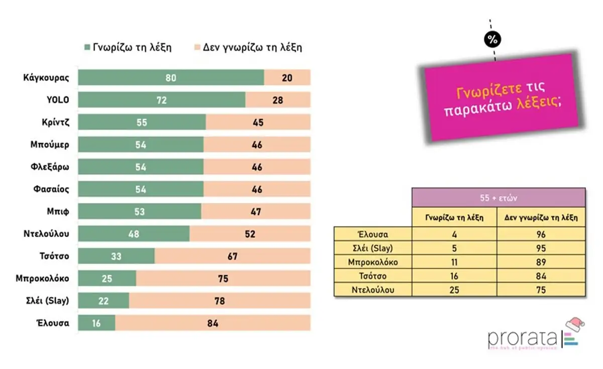 Αν και η ελληνική κοινωνία μοιάζει εξοικειωμένη με slang λέξεις, όπως «κάγκουρας» και «YOLO» δεν συμβαίνει ακριβώς το ίδιο με άλλες, λιγότερο γνωστές στο ευρύ κοινό, όπως «τσότσο», «μπροκολόκο», «σλέι» και «λούζω».