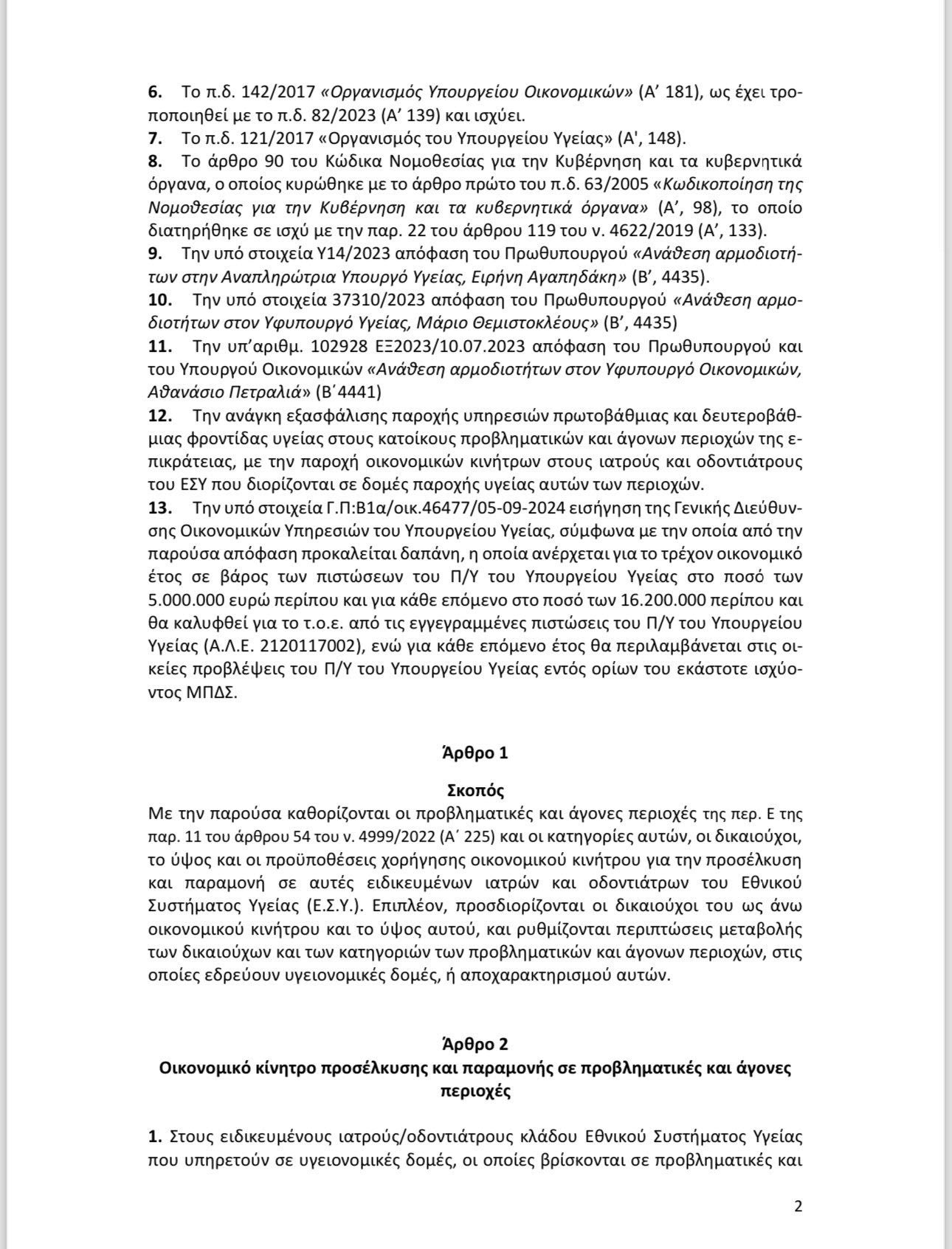 Αξίζει επίσης να σημειωθεί εδώ ότι τα εν λόγω οικονομικά κίνητρα για τις προβληματικές περιοχές είχαν προαναγγελθεί από τον περασμένο Μάιο και ενώ όλο το καλοκαίρι τα νοσοκομεία σε αυτές τις περιοχές υπέφεραν από τις ελλείψεις, τελικά σήμερα 5 Σεπτεμβρίου υπογράφτηκε η ΚΥΑ και δημοσιεύθηκε σε ΦΕΚ.