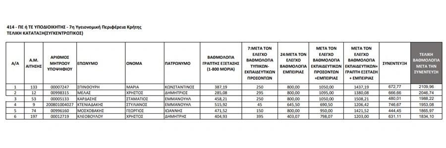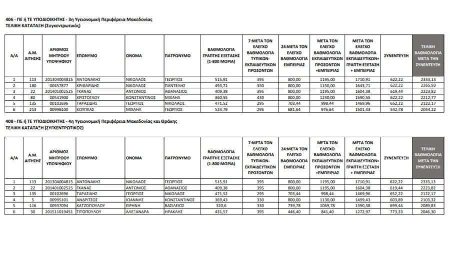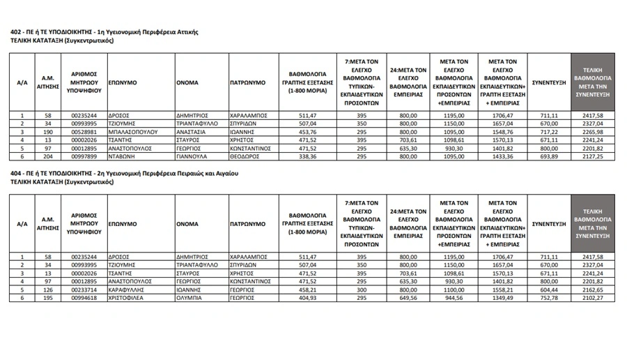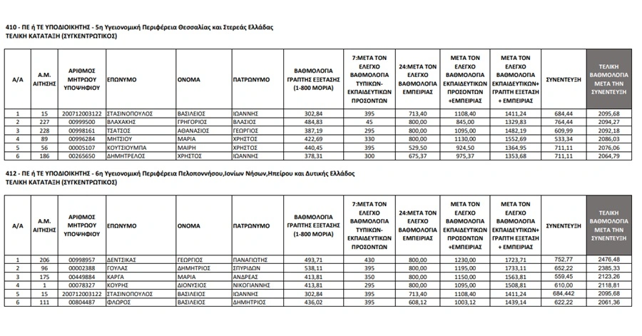 Τους έξι (6) επικρατέστερους υποψήφιους για τις 2 θέσεις υποδιοικητών ανά Υγειονομική Περιφέρεια (ΥΠΕ), συνολικά 14 προκηρυσσόμενες θέσεις για 7 ΥΠΕ, ανακοίνωσε την Παρασκευή το ΑΣΕΠ, κατά τα οριζόμενα στις διατάξεις της παρ.7θ του άρθρου 4 του ν. 5062/2023, στο πλαίσιο της Α.Π: Γ4β/Γ.Π.οικ.69377/29.12.2023 (1ΥΠΕΑΡΧΩΝ/2023, ΑΔΑ: 9ΝΞ5465ΦΥΟ-ΣΡ3) πρόσκλησης εκδήλωσης ενδιαφέροντος.