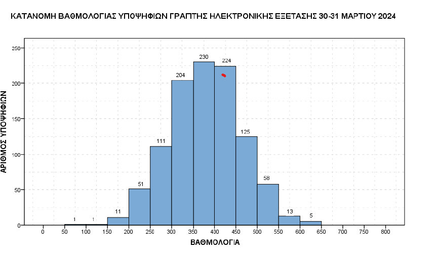 Στο Γράφημα εμφανίζεται η συνολική επίδοση των 1.034 υποψηφίων που έλαβαν μέρος στη γραπτή εξέταση.