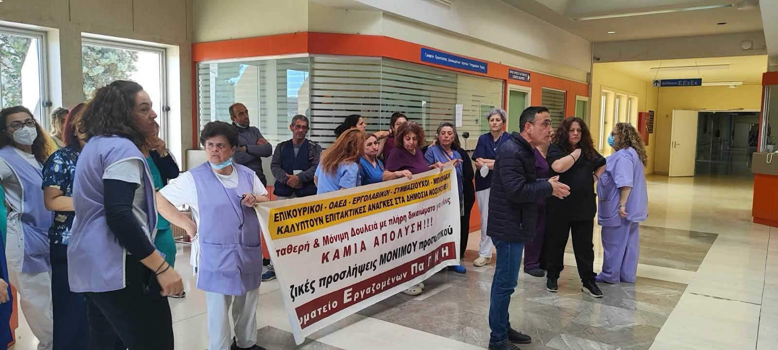 Τόνισαν ότι θα κλιμακώσουν τον αγώνα για μονιμοποίηση των συμβασιούχων ,για 8ωρο πενθήμερο τριάντα πεντάωρο ,για προσλήψεις μόνιμου προσωπικού .