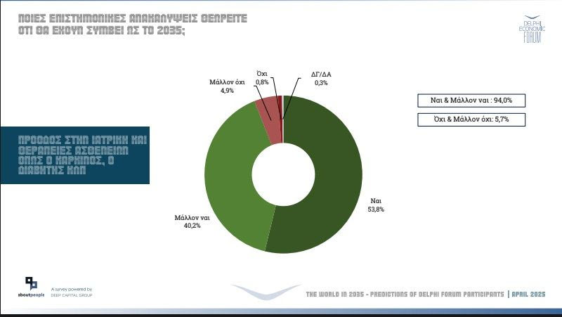 Τις εξελίξεις για την ανακάλυψη νέων θεραπειών για τον καρκίνο και τον διαβήτη αναμένει η κοινωνία. Στο πλαίσιο του 10ου Οικονομικού Φόρουμ των Δελφών πραγματοποιήθηκε η έρευνα «Ο κόσμος το 2035», η οποία αποτυπώνει αισιοδοξία για τις μελλοντικές ιατρικές ανακαλύψεις όσον αφορά σοβαρές ασθένειες, όπως ο καρκίνος και ο διαβήτης.