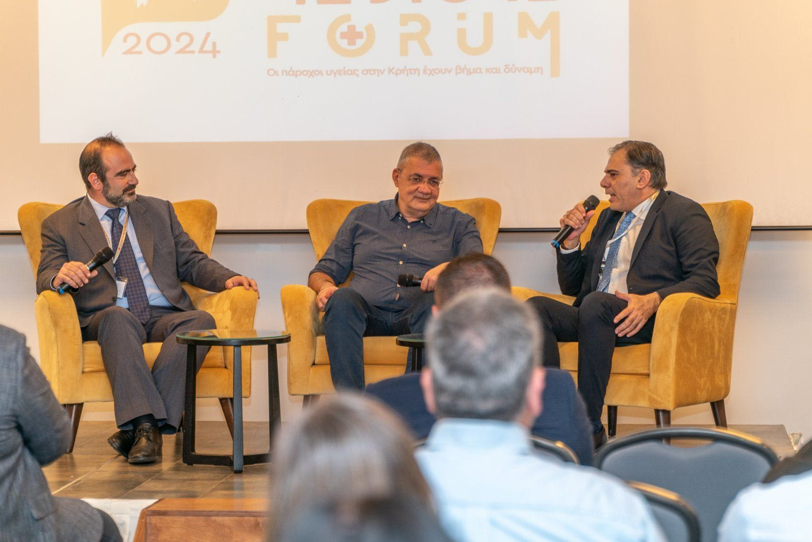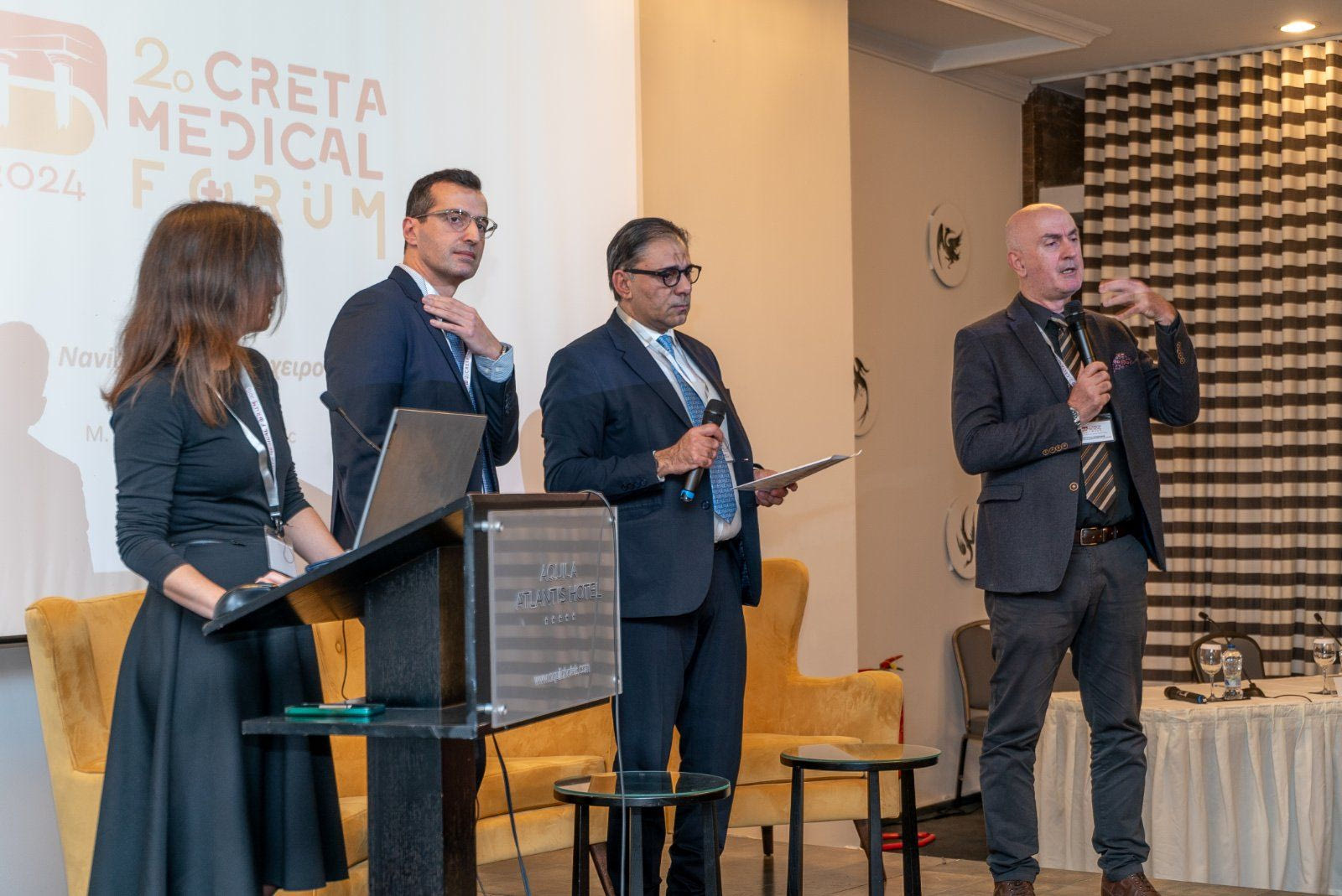 «H Κρήτη τα τελευταία χρόνια περιόρισε την εξαγωγή περιστατικών προς την Αθήνα και το εξωτερικό. Απεναντίας, καταγράφουμε σημαντική άνοδο στην εισαγωγή περιστατικών που έρχονται εδώ. Είτε στο δημόσιο νοσοκομείο είτε στον ιδιωτικό χώρο υγείας για να εξυπηρετηθούν ή να λάβουν ιατρική πράξη. Αυτό ως Κρητικούς μας κάνει να νιώθουμε υπερήφανοι και ασφαλείς», υπογράμμισε ο δημοσιογράφος και πρόεδρος της Οργανωτικής Επιτροπής του Creta Medical Forum, Κώστας Συλιγάρδος,συμληρώνοντας,είμαστε ξανά εδώ μέσα από μια καθαρά ιδιωτική πρωτοβουλία χωρίς να έχουμε ζητήσει καμία χρηματοδότηση από την πολιτεία,αλλά έχοντας στο πλευρό μας την αφρόκρεμα της ιατρικής επιστήμης και τους κορυφαίους λειτουργούς Υγείας στο νησί,με δυο τιμητικές προσθήκες φέτος,δυο Κρητικών που διακρίνονται για την παροχή υπηρεσιών Υγείας στον δημόσιο και ιδιωτικό τομέα στην Αθήνα.Την Μαρίνα Καλογριδάκη,δντρια τμήματος Επειγόντων στο ΚΑΤ και ιπτάμενη γιατρό και τον Απόστολο Ρουμπελάκη δντη της Γ΄Καρδιοχειρουργικής Κλινικής του Ιατρικού Κέντρου Αθηνών.