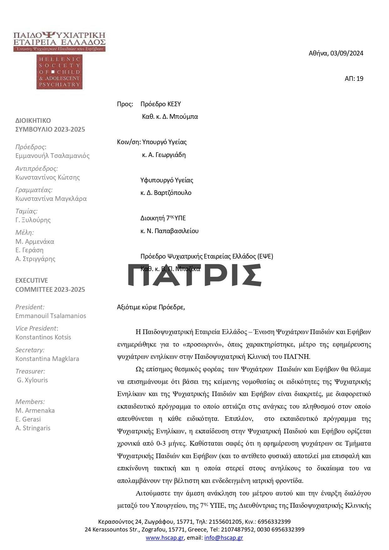 Την ίδια ώρα ψυχίατρος από τον Άγιο Νικόλαο άρχισε ήδη τις εφημερίες στην παιδοψυχιατρική κλινική του ΠΑΓΝΗ ,που έμεινε με έναν γιατρό αυτής της ειδικότητας.