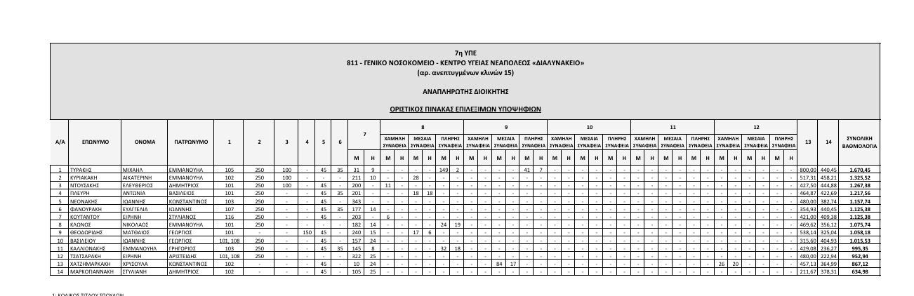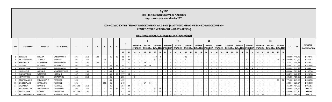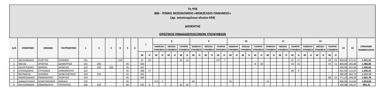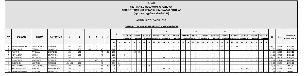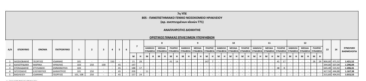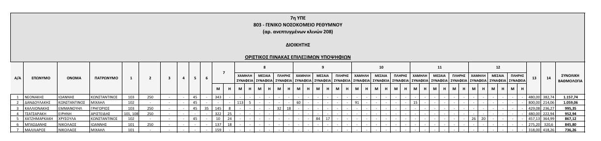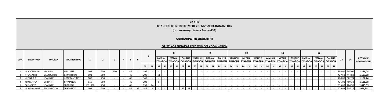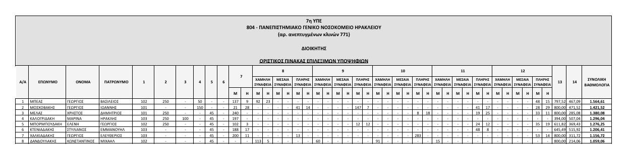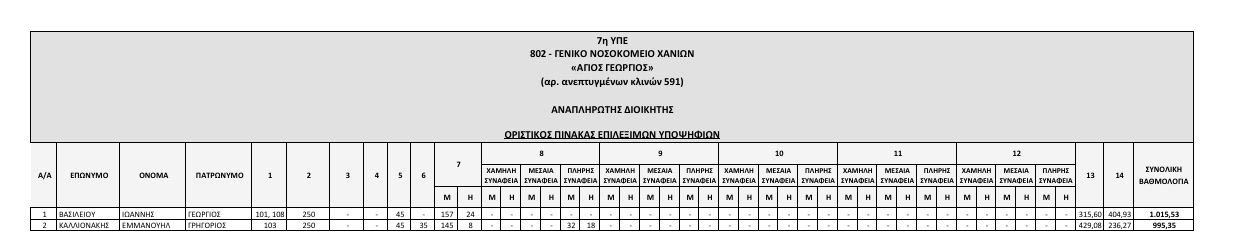 Αναρτήθηκαν από το ΑΣΕΠ οι οριστικοί πίνακες των υποψηφίων που αποκλείονται λόγω έλλειψης των απαιτούμενων προσόντων, και των επιλέξιμων υποψηφίων που διαθέτουν τα απαραίτητα προσόντα, για την κάλυψη θέσεων Διοικητών και Αναπληρωτών Διοικητών Νοσοκομείων της 7ης ΥΠΕ Κρήτης.