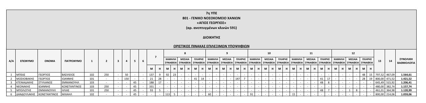 Δείτε αναλυτικά τους υποψήφιους για τα νοσοκομεία της Κρήτης