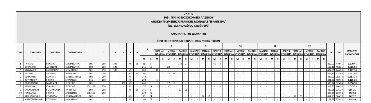 Τα αποτελέσματα προέκυψαν μετά την εξέταση ενστάσεων κατά των προσωρινών πινάκων αποκλειομένων και επιλέξιμων υποψηφίων ανά κωδικό θέσης.