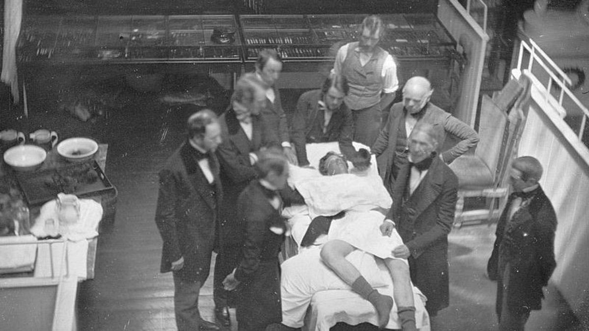 Ωστόσο, όλες οι φωτογραφίες και τα γραπτά που είναι διαθέσιμα πριν από το 1846 δείχνουν ότι η μηχανική ακινητοποίηση των ασθενών με διαφορετικά μέσα ήταν κεντρικό μέρος της χειρουργικής επέμβασης.