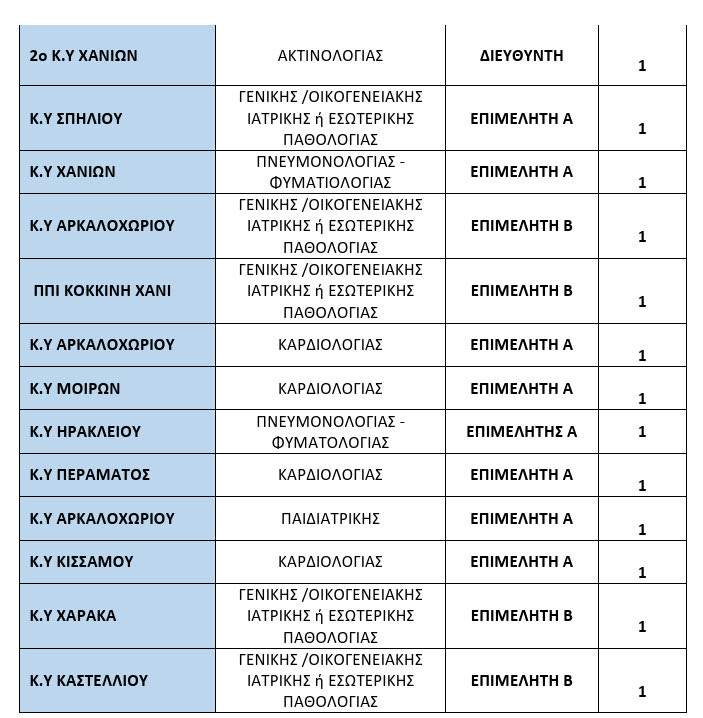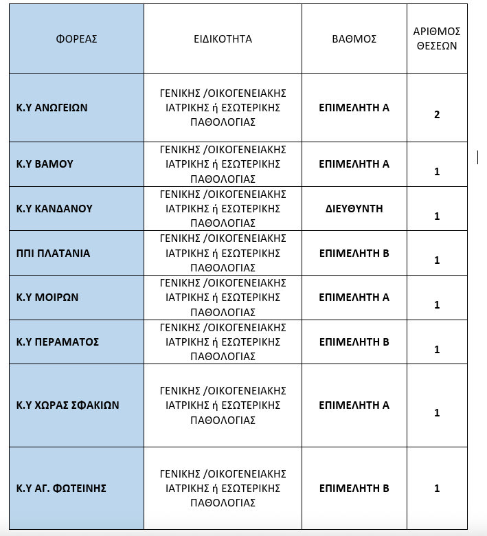 ▪ 7η ΥΠΕ Κρήτης: 22 θέσεις