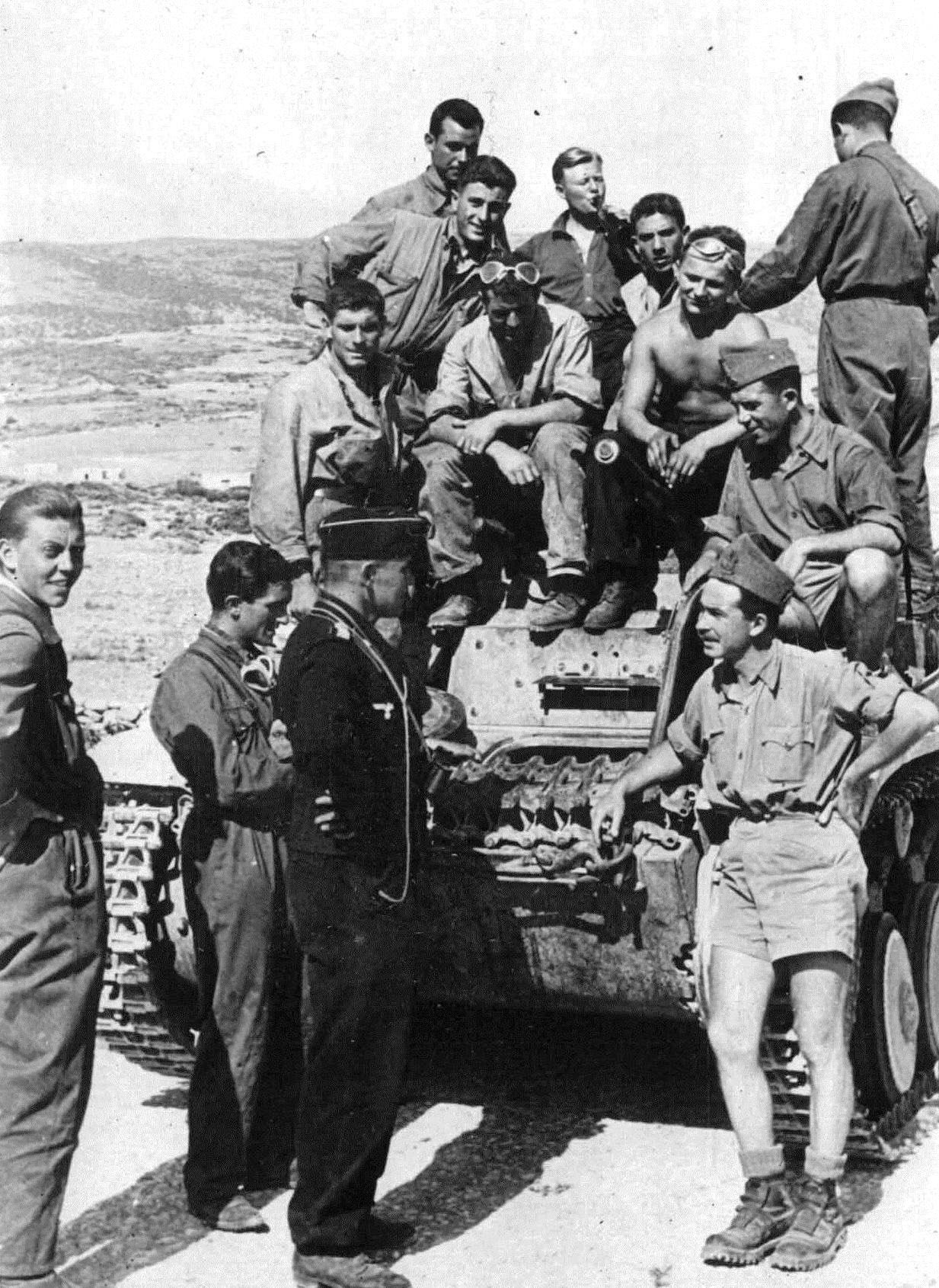 Πράγματι πήγα εκεί ήτο και ο Γκιουζέπε ο δεύτερος πλοίαρχος του ALBANO που είχε έλθει με το Ναύαρχο της Ρόδου. Μου λέει έλα στο χάρτη να μας δείξεις που είναι το Μάλεμε. Τους έδειξα και ρώτησα γιατί ; Μου είπε ότι γίνονται σφοδρές μάχες μεταξύ Γερμανών αλεξιπτωτιστών, Άγγλων και Ελλήνων δια την κατάληψή του, μου έδωσε τσιγάρα πέντε πακέτα και μου είπε να φύγω. Του λέω, προσέξαμε κάτι που δεν το θέλομεν, διότι είμεθα καλοί άνθρωποι και δεν θέλομε να μας φέρεσθε έτσι. Τι; μου λέει.