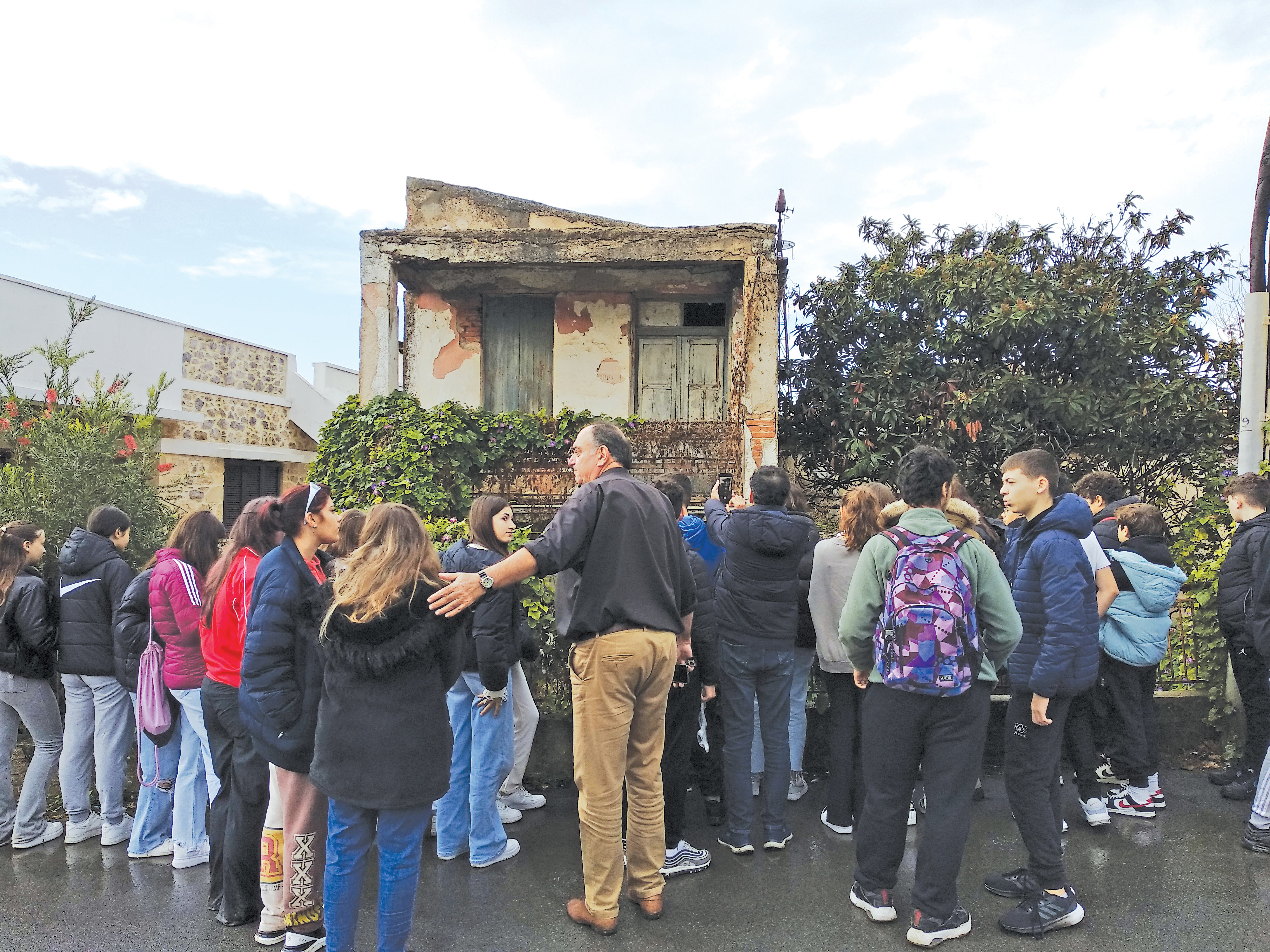 Οι εκπαιδευτικοί που τους συνόδευαν, (Χαριτάκη Μαρία, Κατσαράκη Ειρήνη, Ζαχαριουδάκη Λένα και Πηλίου Δανάη), ζήτησαν τη συνδρομή μας για να πραγματοποιήσουν έναν ιστορικό περίπατο στην περιοχή, όπου είχε την έδρα του το κατοχικό πολεμικό αεροδρόμιο Καστελλίου, με επιχειρησιακή δράση τα χρόνια 1942-1944.