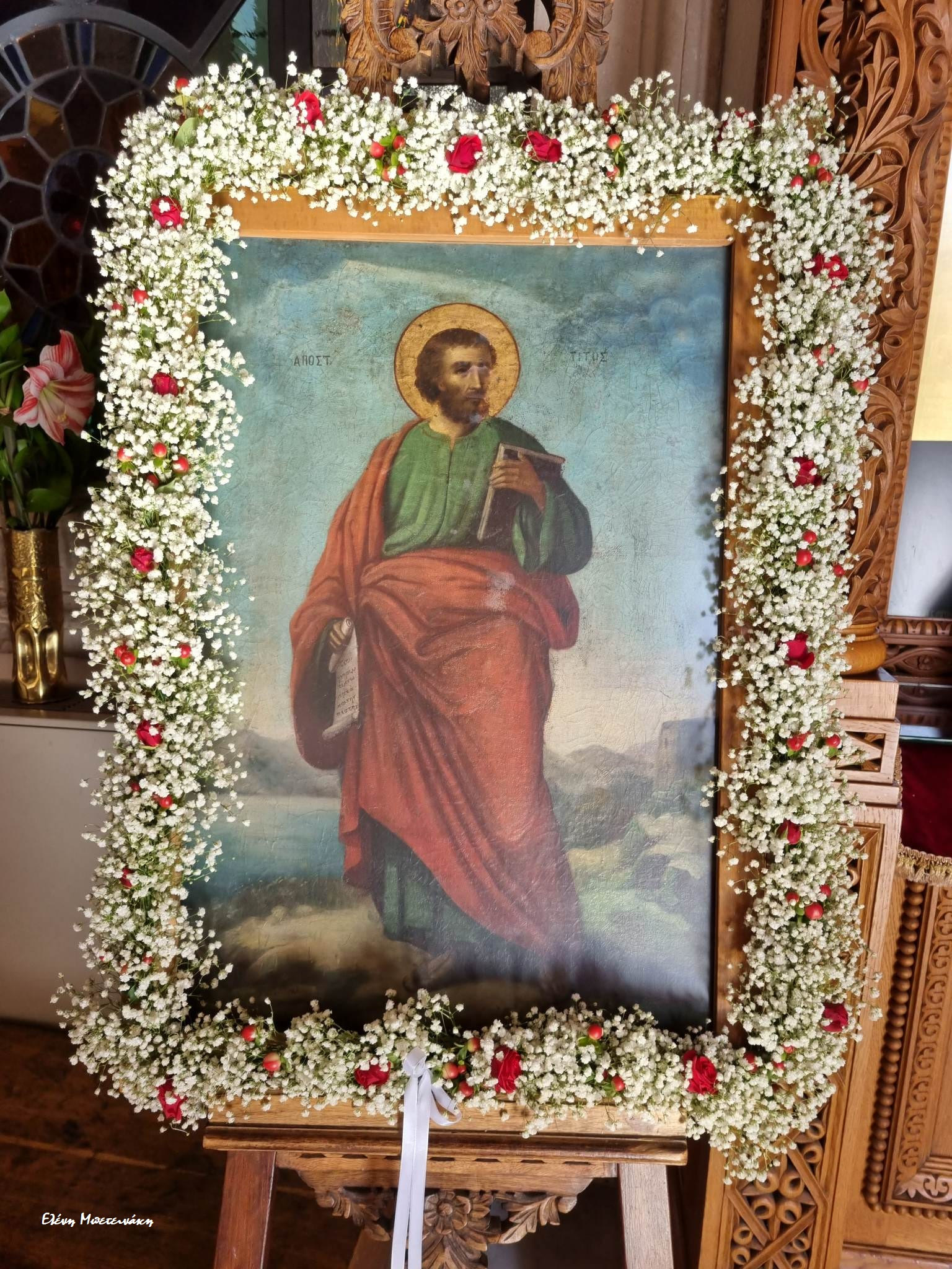 Λένε πως έριχναν παντού ροδοπέταλα και άλλα λουλούδια της κρητικής γης, σε όλο το δρόμο από τo λιμάνι, την 25η Αυγούστου και μέχρι την είσοδο του Ναού, για να υποδεχτούν ένα σύμβολο, ένα ιερό κειμήλιο που μόνο δάκρυα χαράς θα μπορούσε να φέρει στα μάτια όλων των ανθρώπων που βρίσκονταν εκεί.