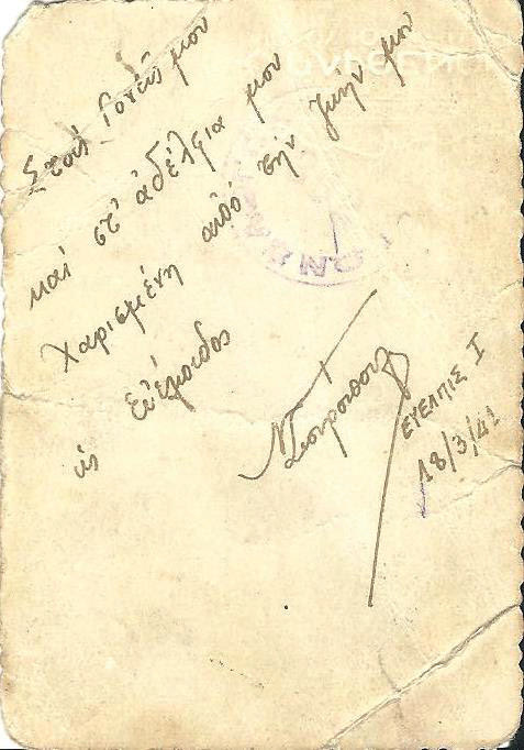 - 22-5-1941: Ώρα 8.00: Άφιξις εις Σέμπρωνα. Ολίγον μεσημβρινόν συσσίτιον. Ώρα 20.00: Αναχώρησις.