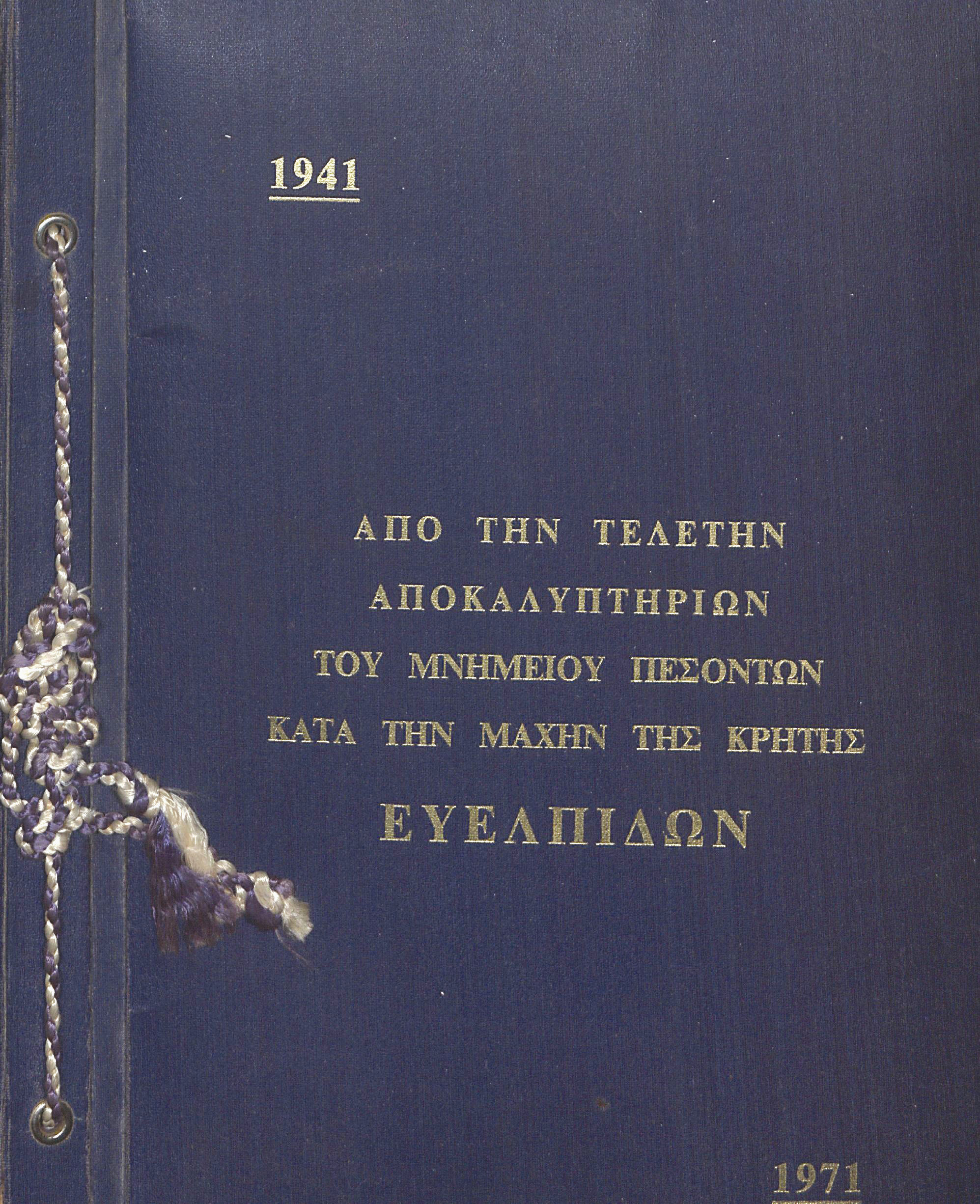 Την ήμερα των εγκαινίων, ένα λεύκωμα που δεν κυκλοφόρησε ποτέ στο εμπόριο, μοιράστηκε σε στρατιωτικούς που παρέστησαν το 1971 στη θεμελίωση του Ηρώου των Ευελπίδων στο Κολυμπάρι Χανίων.