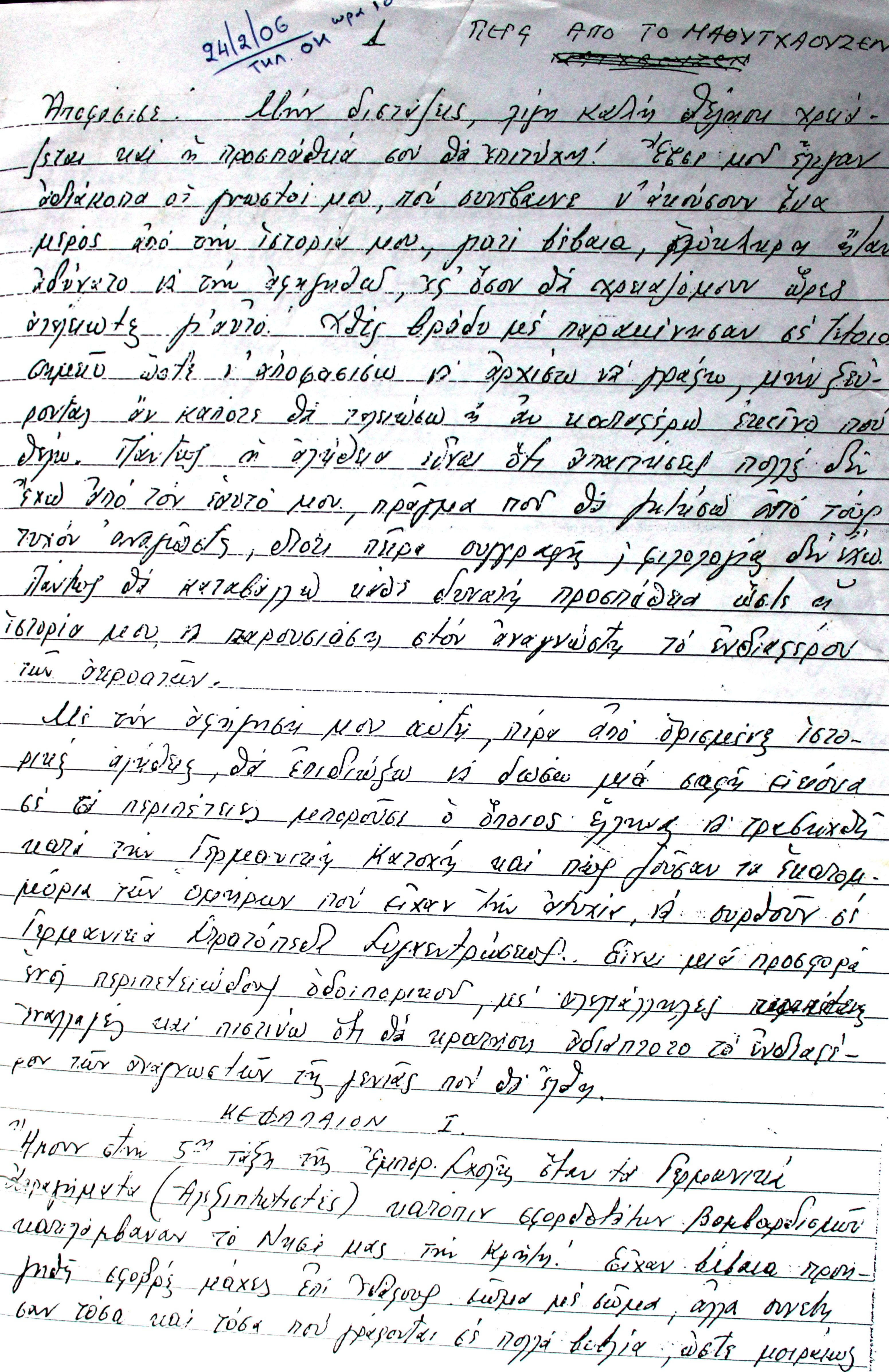 «…πέρασαν 4 ημέρες και στις 8/2/1944 μας ετοίμασαν 9 ή 10 άτομα για φευγιό, θα μπαρκάραμε όπως και έγινε για τη Γερμανία στα στρατόπεδα συγκεντρώσεως και καταναγκαστικής εργασίας.