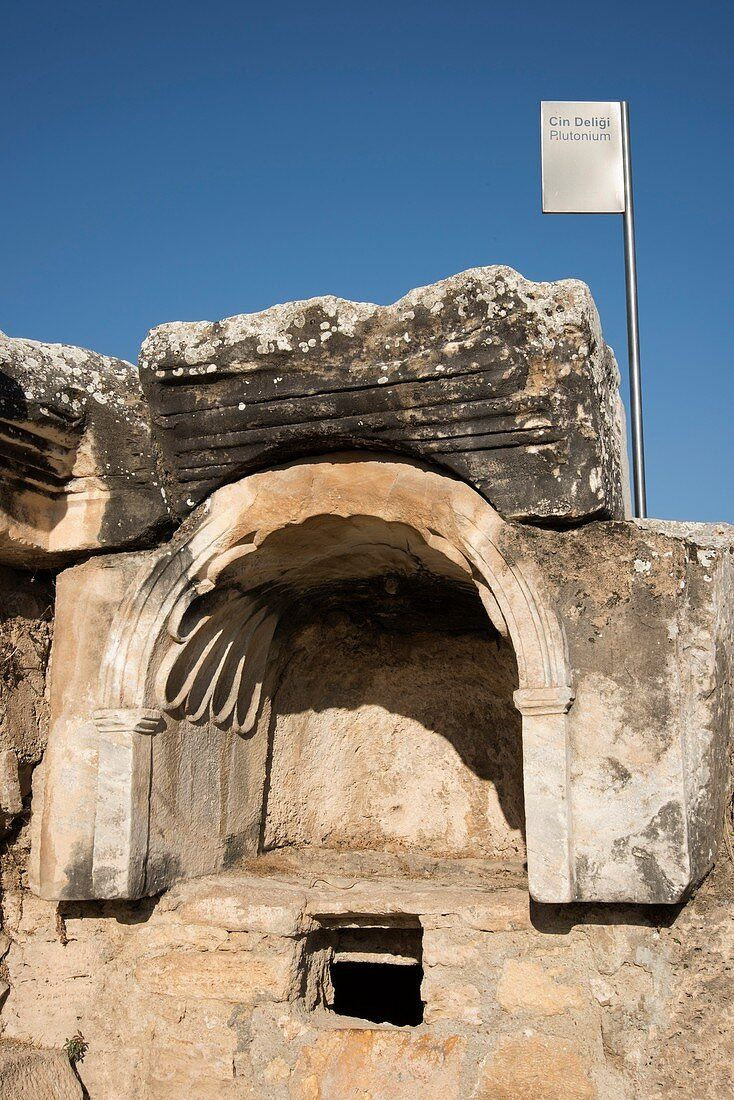 Σύμφωνα με τον αρχαίο φιλόσοφο Στράβωνα, οι ευνουχισμένοι ιερείς του Κάτω Κόσμου μετέφεραν ζώα για μέσα από την πόρτα, γνωστή ως «Πλουτώνιο».