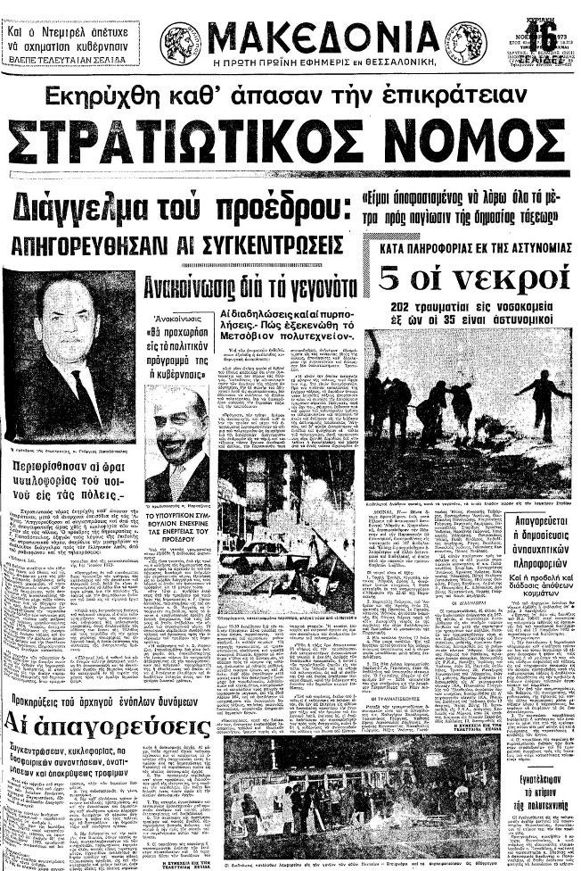 Δείτε τα πρωτοσέλιδα των εφημερίδων της 17 Νοεμβρίου 1973: