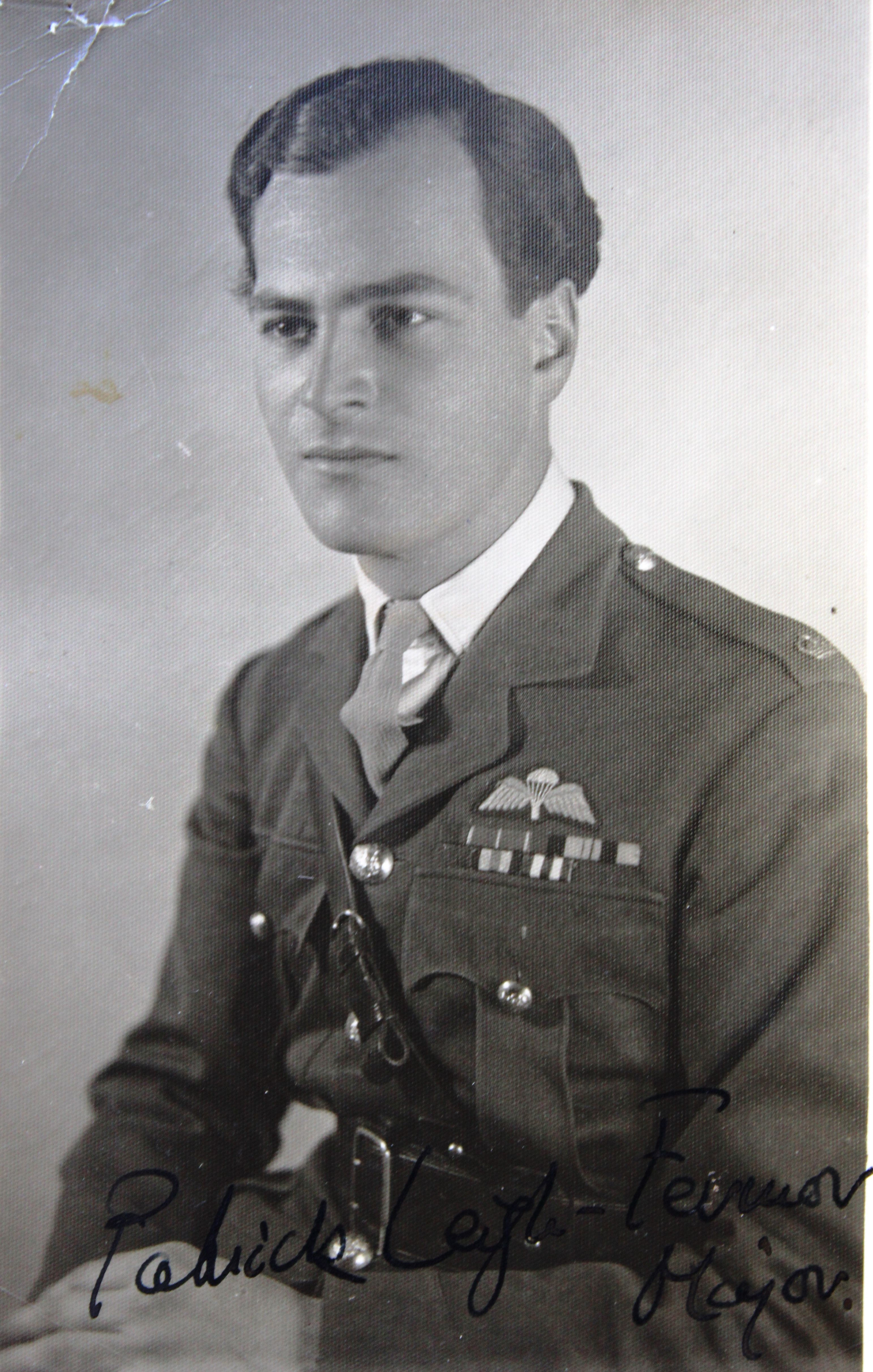 Ο Άγγλος Λοχαγός Πάτρικ Λη Φέρμορ. Φωτογραφία χαρισμένη από τον ίδιο στο Χριστομιχάλη Ξυλούρη στις 7 Σεπτεμβρίου 1946. Στην πίσω όψη της φωτογραφίας ο Πάτρικ Λη Φέρμορ γράφει: