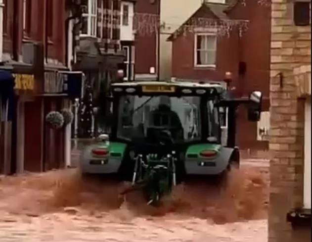 Πρόκειται για τον οδηγό ενός… τρακτέρ, ο οποίος αποφάσισε για δική του διευκόλυνση να κάνει βόλτα με το όχημά του εντός των πλημμυρισμένων δρόμων της πόλης Tenbury Wells, στο Worcester.