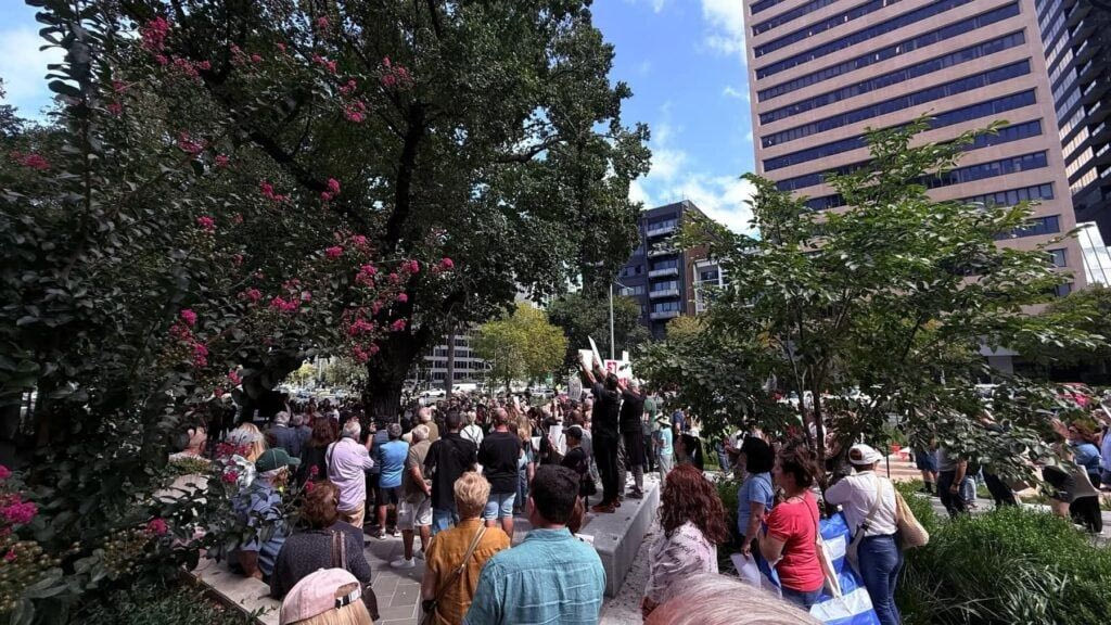 Αρκετές εκατοντάδες άτομα συγκεντρώθηκαν έξω από το ελληνικό προξενείο, στο κέντρο της Μελβούρνης, στην Αυστραλία, στα πλαίσια της συγκέντρωσης διαμαρτυρίας για την τραγωδία των Τεμπών.