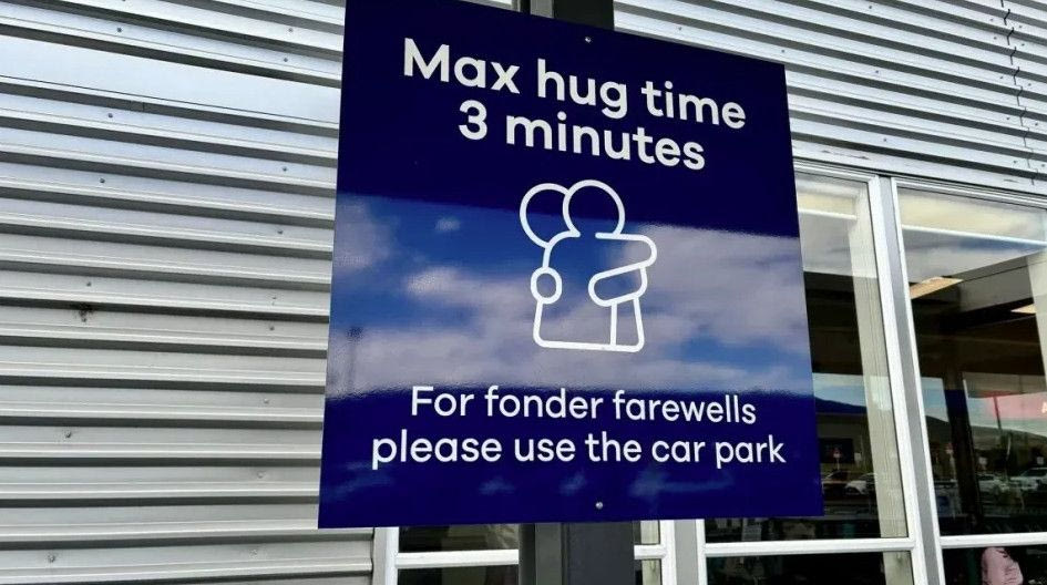 Αγκαλιές με χρονόμετρο θέλει να επιβάλει το αεροδρόμιο Dunedin στη Νέα Ζηλανδία, τοποθετώντας μία πινακίδα που έχει προκαλέσει αρκετές αντιδράσεις.