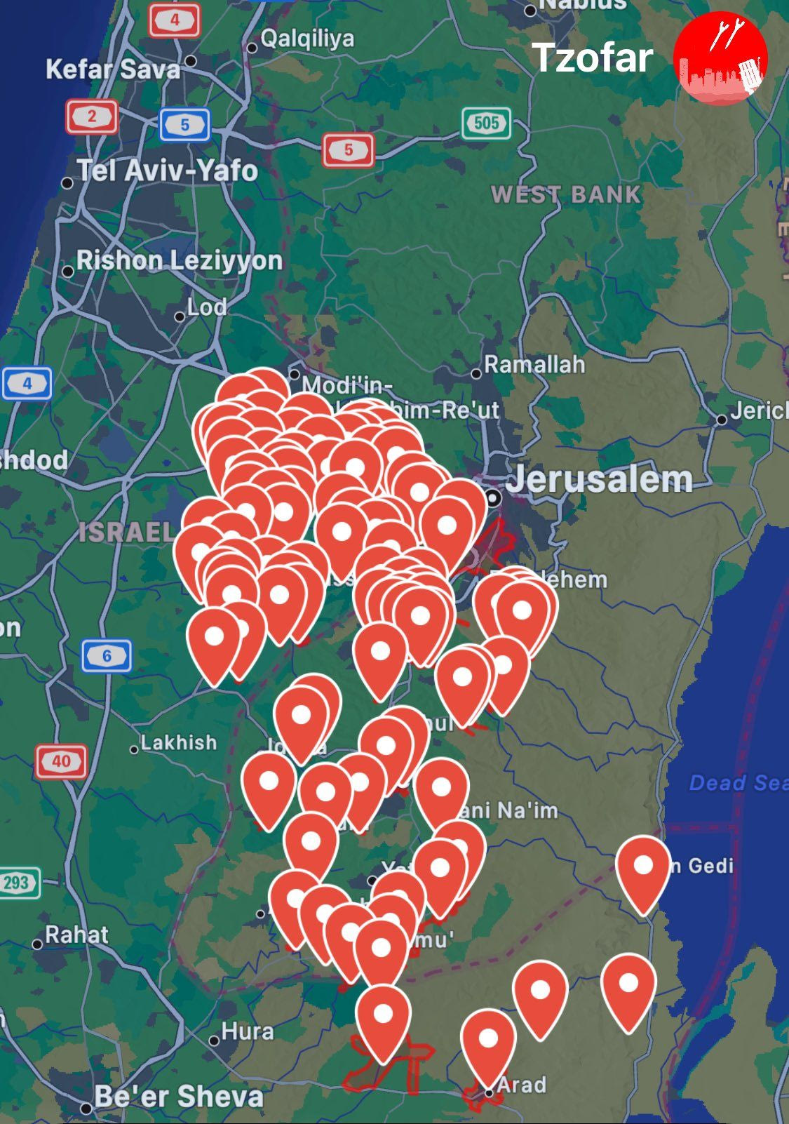 Οι σειρήνες ξύπνησαν τους πολίτες σε όλο σχεδόν το κεντρικό Ισραήλ κατά τις πρώτες νυκτερινές ώρες. Από την Ιερουσαλήμ μέχρι και την πόλη Μπερ Σεβά, οι κάτοικοι υποχρεώθηκαν να μεταβούν στα πολεμικά καταφύγια, όταν το σύστημα αντιβαλλιστικής άμυνας της χώρας εντόπισε βλήματα που κατευθύνονταν προς το Ισραήλ από την κατεύθυνση της Ερυθράς θάλασσας.