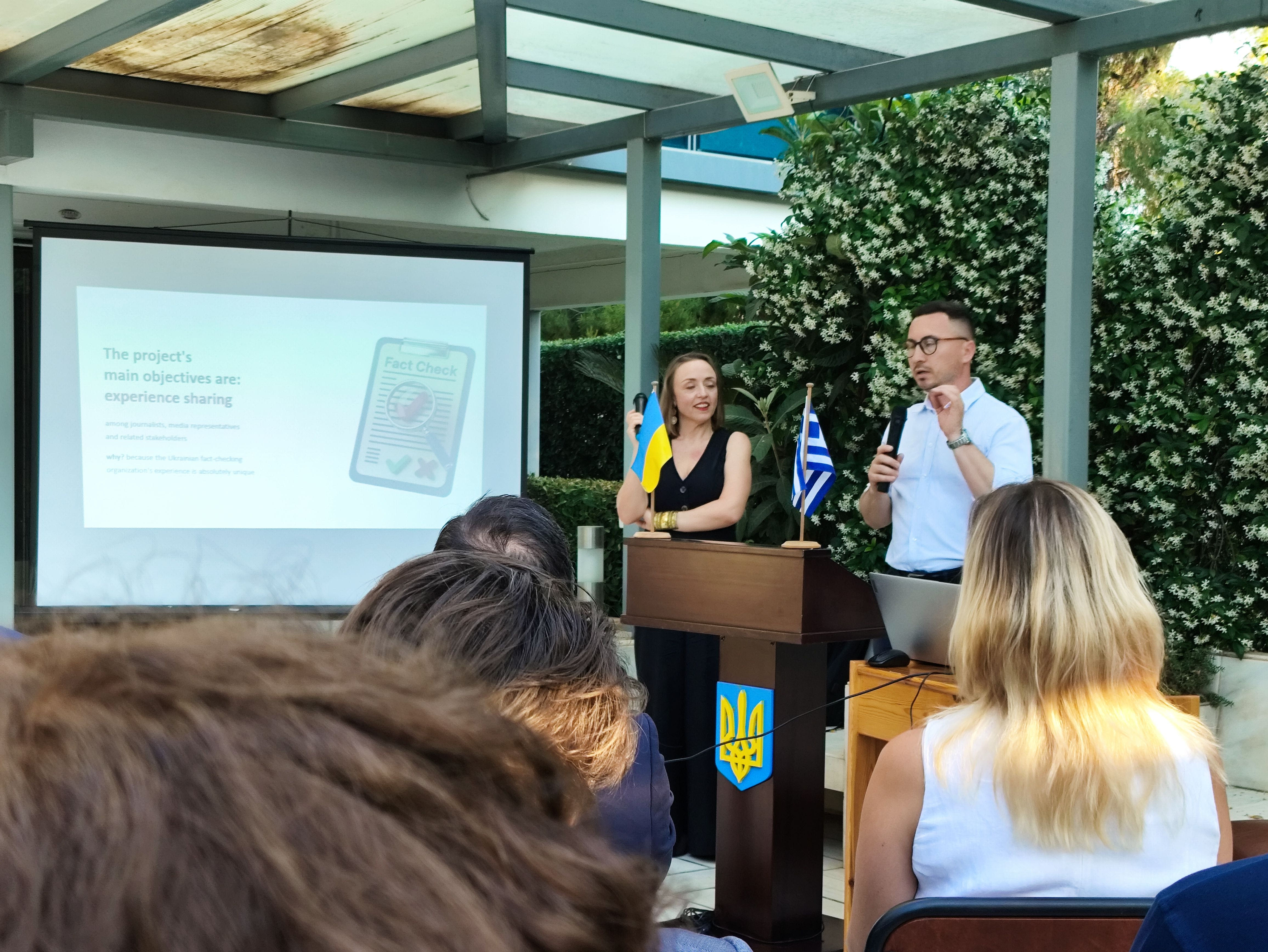 Τον λόγο πήρε και ο Michael Dankanych, επίσης δημοσιογράφος που είναι ο εμπνευστής της πρωτοβουλίας. “Brake the Fake”, μιλώντας για τη σημασία που έχει για την Ουκρανία και τον αγώνα της η σωστή ενημέρωση και πληροφόρηση των συμμαχικών χωρών και ειδικότερα των κοινωνιών τους που υφίστανται τις συνέπειες των υβριδικών επιχειρήσεων παραπληροφόρησης της Ρωσίας.