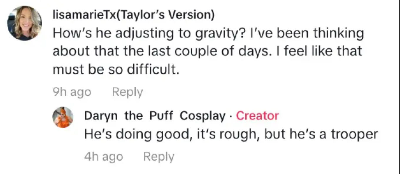 Ο λόγος για τον αστροναύτη Μπάρι Μπατς Γουίλμορ. Όπως αναφέρει η κόρη του σε ανάρτησή της στο TikTok, ο πατέρας της είναι καλά αλλά η προσαρμογή του στη Γη είναι «δύσκολη», καθώς αντιμετωπίζει δυσκολίες με τη βαρύτητα.