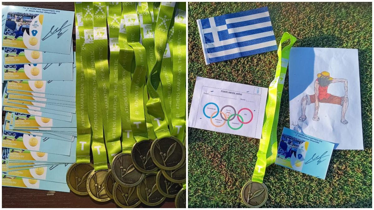 Οι νεαροί αθλητές συμμετείχαν σε πέντε αγωνίσματα, σκυταλοδρομία, δρόμος 60μ., άλμα εις μήκος, σφαιροβολία και δρόμος μετ’ εμποδίων. Στη Rhein – Neckar – Ολυμπιάδα δεν υπάρχουν νικητές και ηττημένοι το σύνθημα είναι ένα «Είμαστε όλοι νικητές». Όλα τα παιδιά ανταμείφθηκαν για την προσπάθεια τους με μετάλλια που χορήγησε ο ΣΕΓΑΣ, ενώ οι διοργανωτές είχαν εξασφαλίσει αυτόγραφα από τον Χρυσό Ολυμπιονίκη Μίλτο Τεντόγλου, κάτι που ενθουσίασε ιδιαίτερα τους “πρωταγωνιστές” της Ολυμπιάδας.