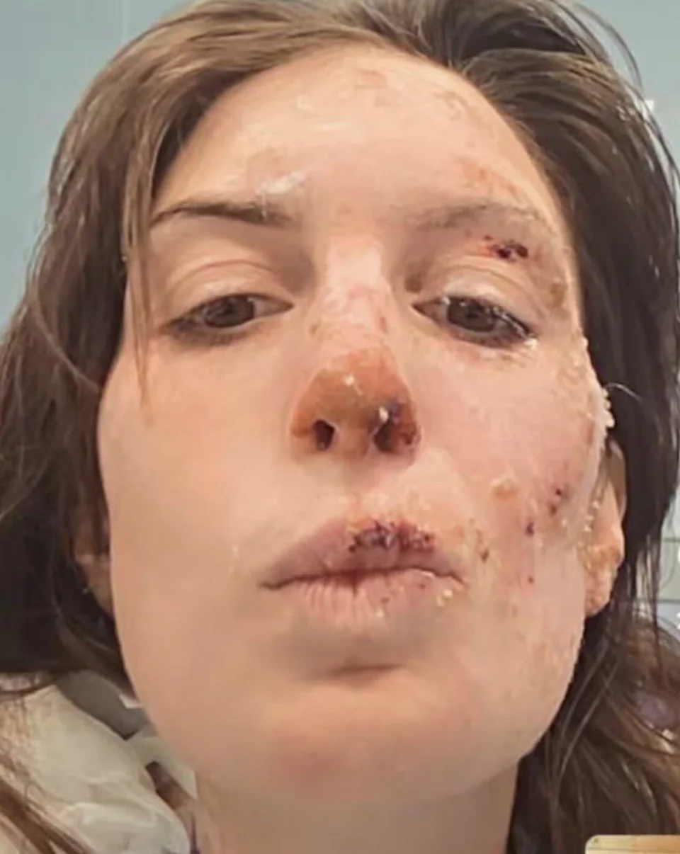 Αντιδρώντας ενστικτωδώς, η 29χρονη Ιταλίδα, σήκωσε τα χέρια και τα μπράτσα της για να προστατεύσει το πρόσωπό της, με αποτέλεσμα να υποστεί σοβαρά εγκαύματα γύρω από το αριστερό της μάτι, στο μάγουλο και στα χείλη, στη μύτη, καθώς και στα δύο χέρια, αλλά και σε άλλα σημεία του σώματός της.