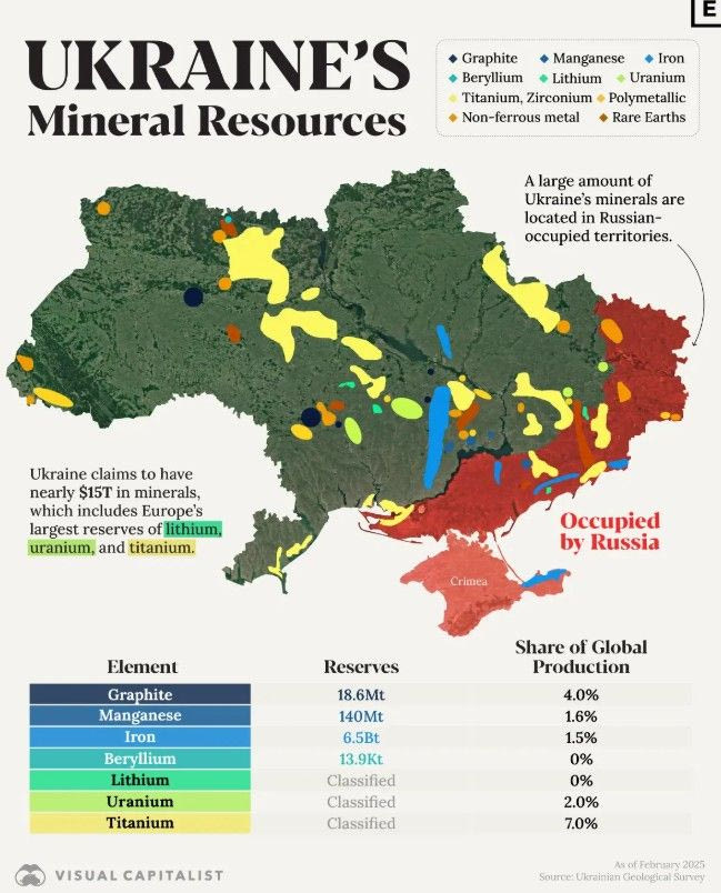 Η συμφωνία ΗΠΑ – Ουκρανίας, που προβλέπει δημιουργία επενδυτικού ταμείου για την εξόρυξη και αξιοποίηση αυτών των πόρων, αναδεικνύει με σαφήνεια τη σημασία του ορυκτού χάρτη της χώρας.