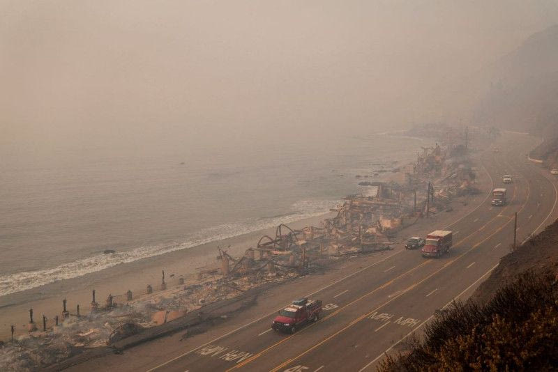 Η παραλία του Μαλιμπού με τα διάσημα beachhouses, από τα πιο ακριβά ακίνητα στις Ηνωμένες Πολιτείες, έχει πλέον σε μεγάλο βαθμό εξαφανιστεί από την καταστροφική πυρκαγιά – μαμούθ του Λος Αντζελες, που έχει αφήσει πίσω της τουλάχιστον 10 νεκρούς και καίει ακόμα ανεξέλεγκτή.