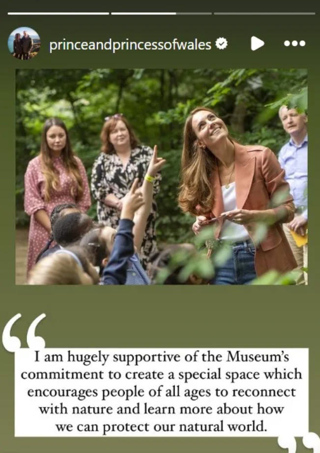 Μια ανάρτηση με αφορμή τα εγκαίνια των νέων κήπων του Μουσείου Φυσικής Ιστορίας έκανε η πριγκίπισσα της Ουαλίας Κέιτ Μίντλετον.