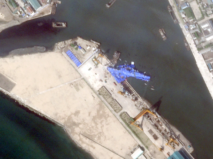 Δορυφορικές εικόνες που αναλύθηκαν από το Κέντρο Στρατηγικών και Διεθνών Σπουδών (CSIS) στις ΗΠΑ επιβεβαιώνουν την έκταση του περιστατικού. Το αντιτορπιλικό φαίνεται να έχει γείρει στο πλάι, καλυμμένο με μπλε μουσαμά, με την πρύμνη στραμμένη προς τη θάλασσα και την πλώρη ακόμη πάνω στη ράμπα.