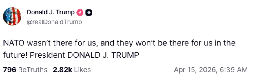 Λίγα λεπτά αργότερα ο Αμερικανός πρόεδρος καταφέρθηκε κατά του ΝΑΤΟ γράφοντας για τη βορειοατλαντική συμμαχία: