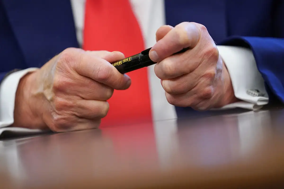 Την ημέρα της ορκωμοσίας του, ο Ντόναλντ Τραμπ εμφανίζεται με τον μαρκαδόρο του στο χέρι στο Οβάλ Γραφείο για να υπογράψει 26 εκτελεστικά προεδρικά διατάγματα.