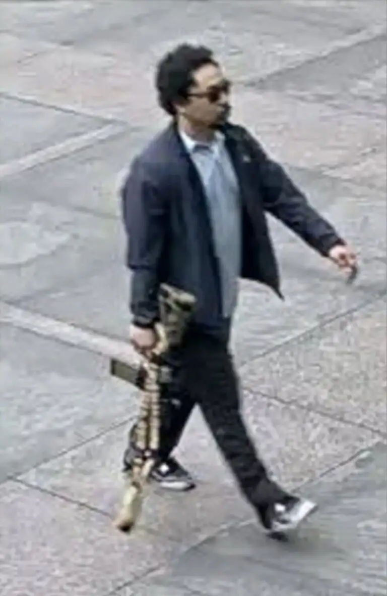 Φωτογραφίες καταγράφουν τον δράστη να περπατά ήρεμα προς την είσοδο του κτιρίου, κρατώντας ανενόχλητος το όπλο του, ένα επιθετικό τουφέκι τύπου Μ4, λίγο πριν ξεκινήσει το μακελειό.