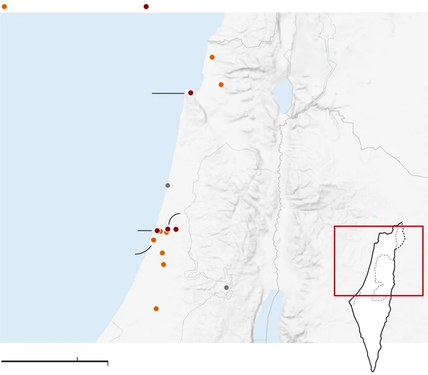 Σε περιοχές όπως η Χάιφα, το Ρεχοβότ, η Μπνέι Μπρακ και η Ταμρά, οι πληροφορίες περιορίζονται σε αναφορές πληγμάτων, χωρίς διαθέσιμες οπτικές καταγραφές.